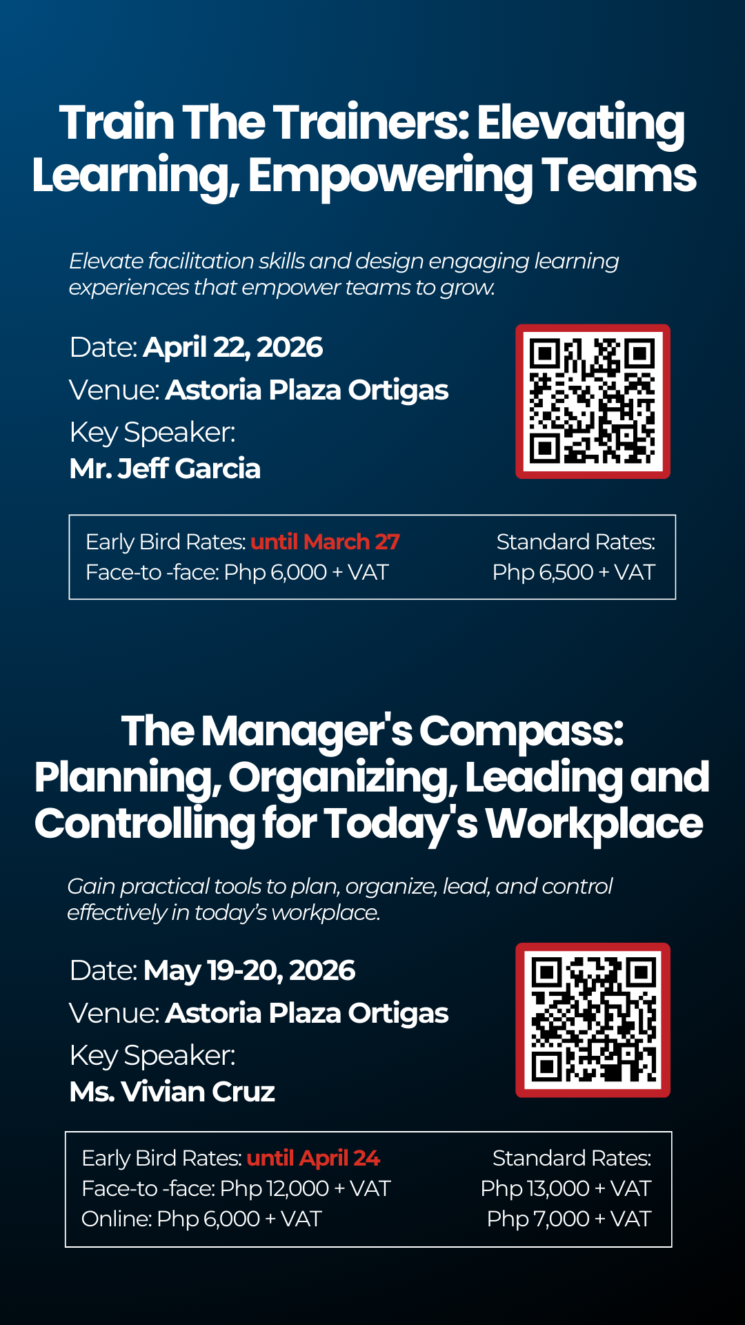 Our upcoming 2-day leadership training program unveils the full picture behind effective management, showing you how to master the four key functions. Unlike other programs, we will also tackle risk identification and management, effective resource allocation, as well as coaching and mentoring.